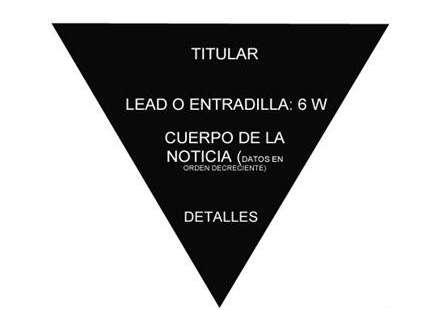 En pocas palabras, la pirámide invertida es una técnica del periodismo que busca destacar los datos más importante de una noticia en las primeras líneas y a medida que se avanza en la construcción de la misma se van agregando otros detalles.